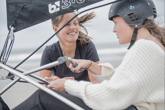 Na een korte introductie van de instucteur scheur je binnen 10 minuten over het strand.